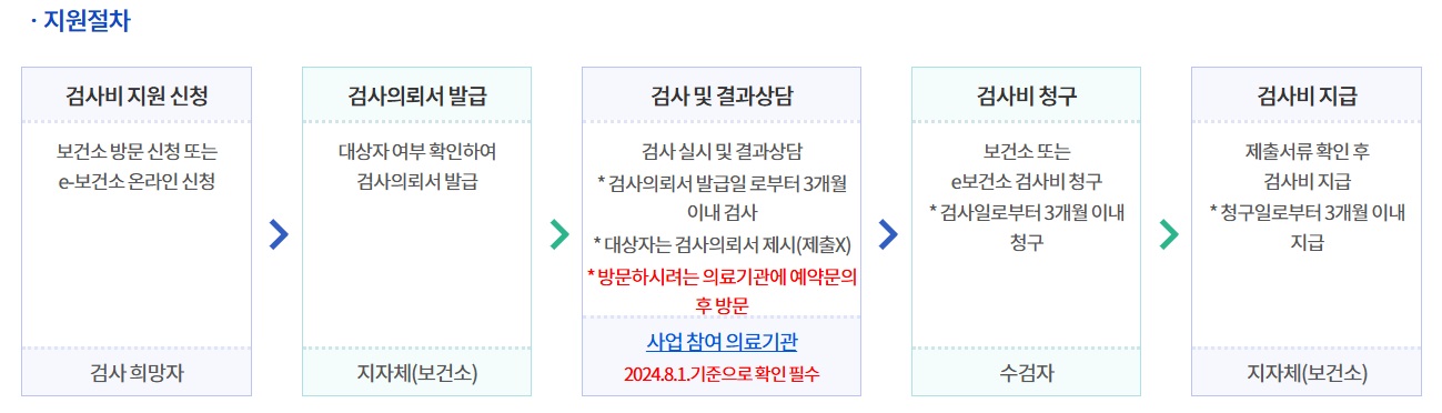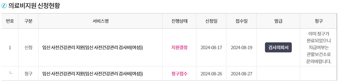 산전검사-지원절차 사이트에서 지원 신청 후, 2-3일 뒤에 메시지로 검사의뢰서를 발급해주면 사업 참여 의료기관을 확인하여 다녀오시면 됩니다. 검사의뢰서 발급 기준 3개월 이내에 방문 및 청구해야 지원이 되므로 꼭 시기에 맞춰서 방문, 검진, 청구 해주시면 됩니다.
