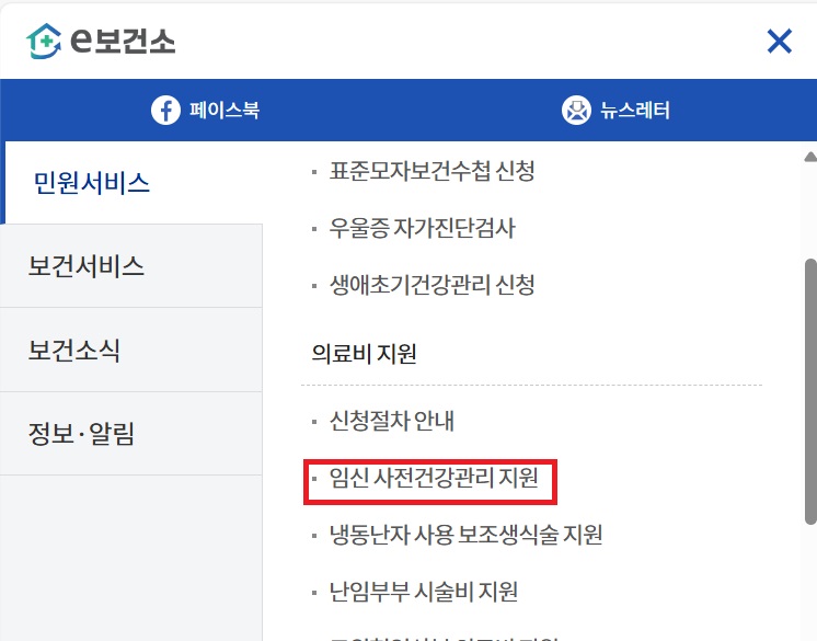 보건소-산전검사-신청 보건소에서 산전검사 신청을 위해서는 e보건소 사이트에 접속하여 민원서비스-> 임신 사전건강관리 지원에 들어가서 신청하시면 됩니다.