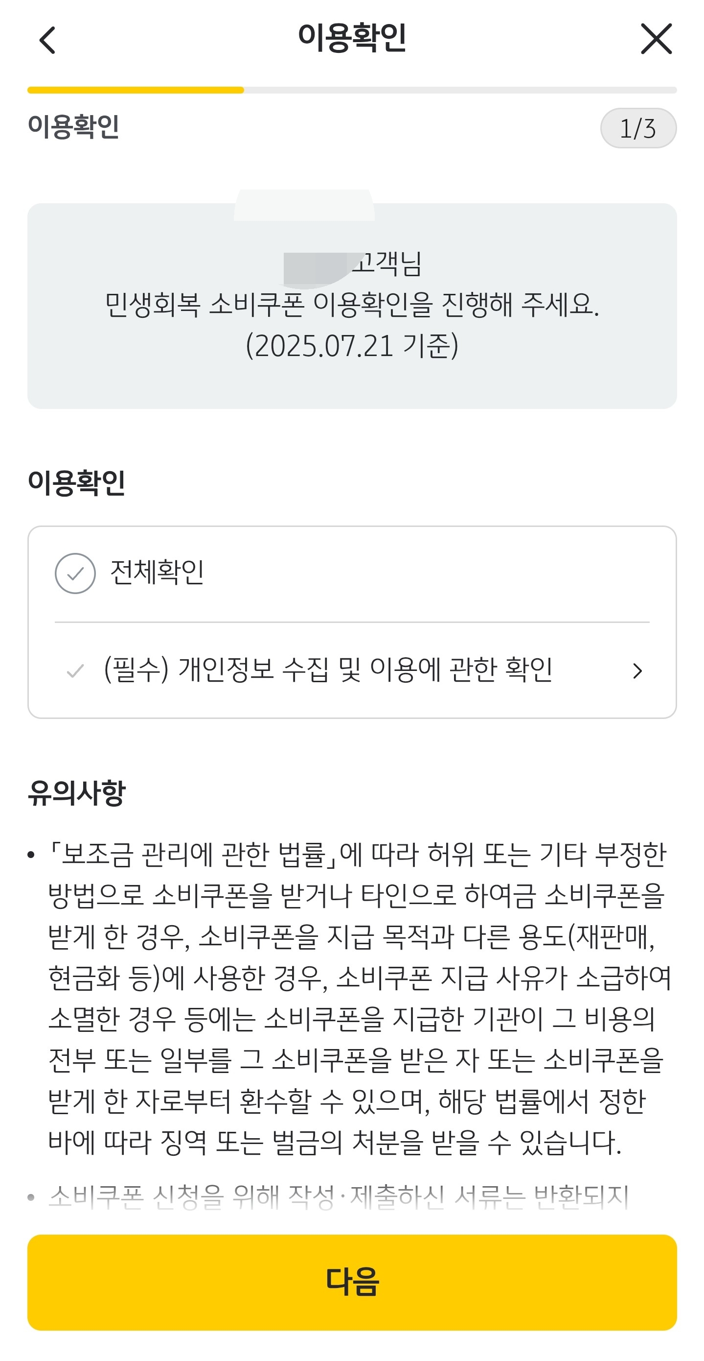 3. 아기 민생회복 소비쿠폰 국민은행 신청